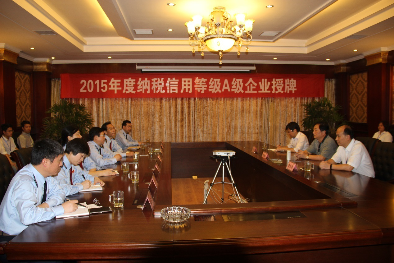 发布时间:2016-05-30为规范信用管理,促进诚信自律,提高法律遵从,推进社会信用,江西省税务部门根据国家相关管理办法和有关规定,遵循客观公正、标准统一、分级分类、动态调整的原则,对纳税人开展2015年度纳税信用等级评选。三川智慧因依法经营、诚信纳税、规范管理被评为2015年度纳税信用等级A级企业。2016年5月26日,鹰潭市国税局局长吴晨阳、鹰潭市地税局副局长孙军样专程来到三川智慧,向三川智慧颁发了“2015年度纳税信用等级A级纳税人” 奖牌及证书。